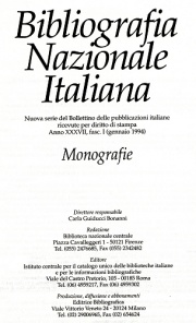 | 12:00, 4 dic 2023 | BibNI-1994-cop.jpg (file) | 162 KB | {{Informazioni file |Descrizione = ''Bibliografia nazionale italiana. Monografie'' (Anno 37, gen. 1994), copertina |Fonte = }} | 1 | |