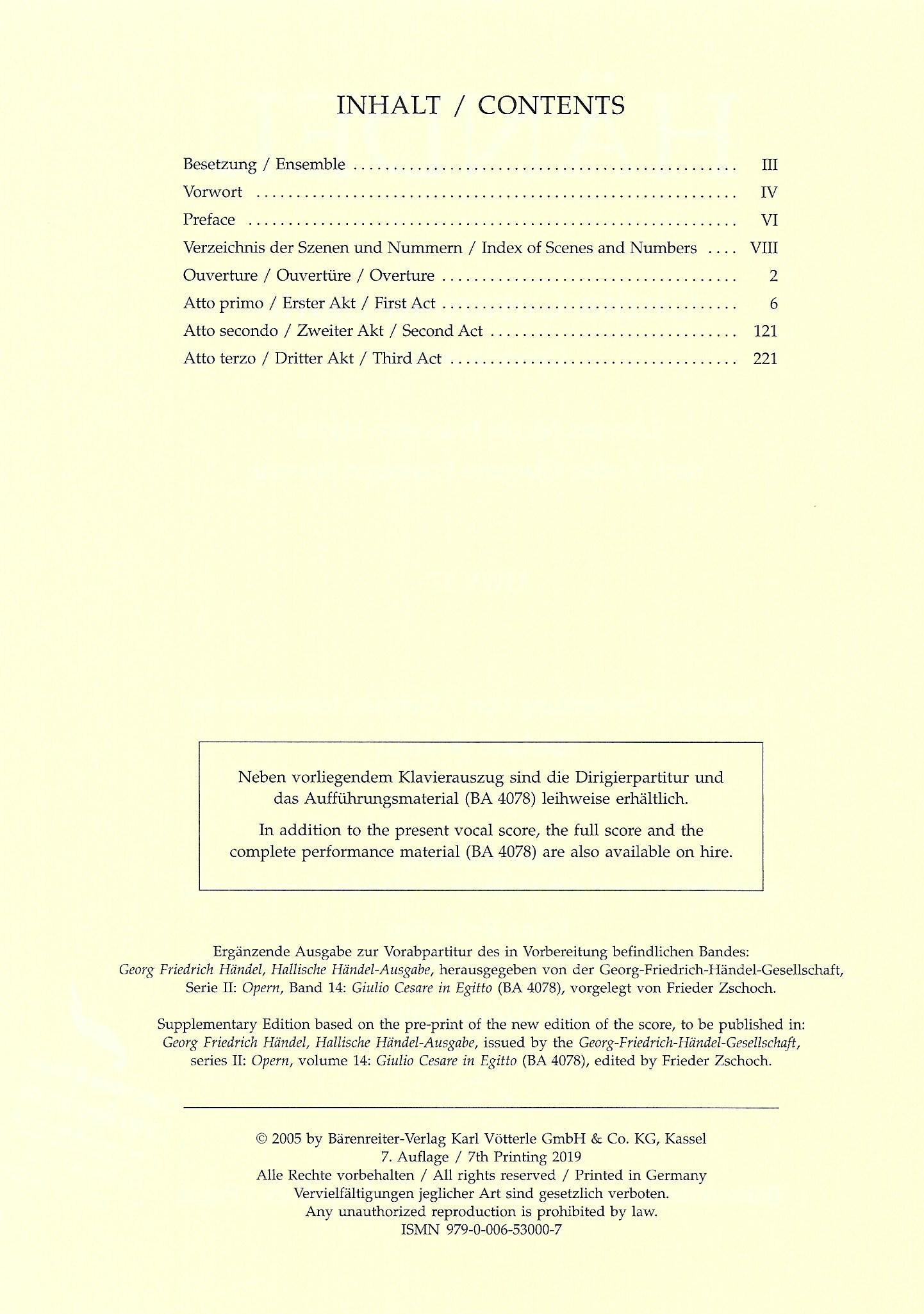 Händel: Giulio cesare, verso del frontespizio