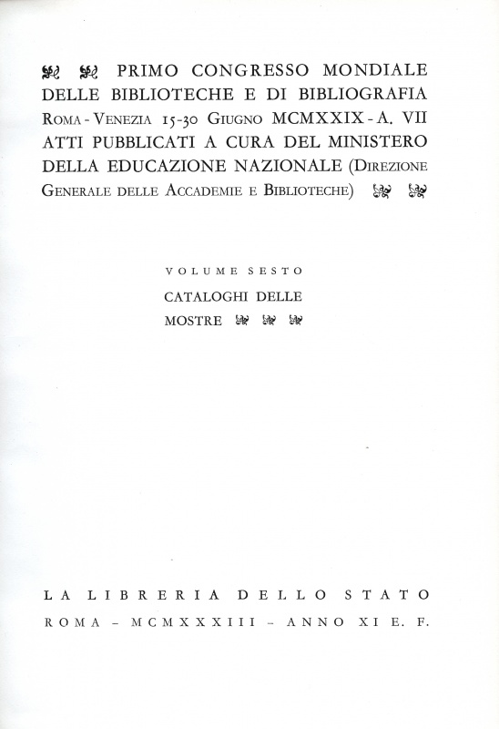 Reicat:Primo Congresso mondiale delle biblioteche e di bibliografia (1931)