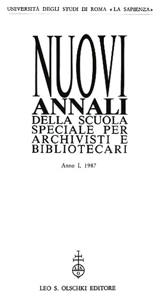 | Fonte | Istituto Centrale per il Catalogo Unico delle biblioteche italiane e per le informazioni bibliografiche (ICCU). |