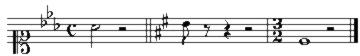 C+3 Chiave di do in terzo rigo: chiave di contralto; notazione mensurale