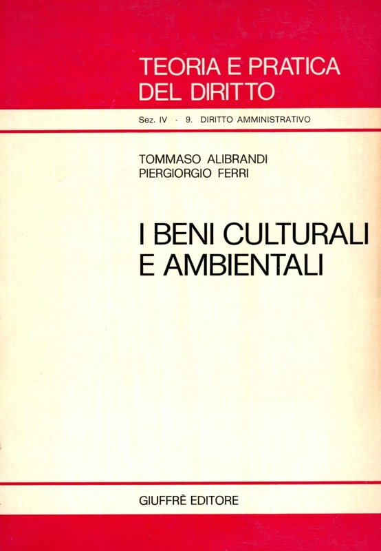 Alibrandi – I beni culturali e ambientali (1978)Alibrandi, Tommaso I beni culturali e ambientali / Tommaso Alibrandi, Piergiorgio Ferri. – Milano : Giuffrè, 1978. – IV, 682 p. ; 22 cm. – (Teoria e pratica del diritto. Sezione 4, Diritto amministrativo ; 9) t.u. I beni culturali e ambientali