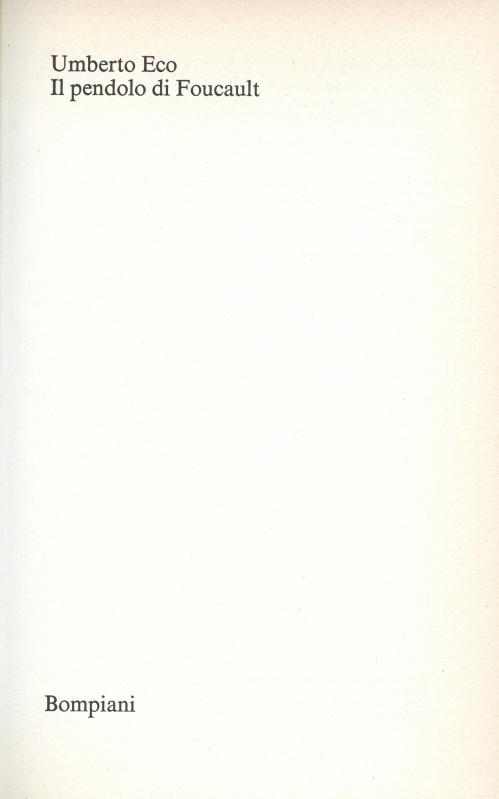 Eco – Il pendolo di Foucault (1988)Eco, Umberto Il pendolo di Foucault / Umberto Eco. – Milano : Bompiani, 1988. – 509 p. ; 23 cm. – ISBN 88-452-0408-1[1] t.u. Il pendolo di Foucault