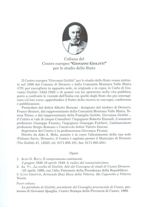 Gratton – Armando Diaz duca della Vittoria (2001)Gratton, Luigi Armando Diaz, duca della Vittoria : da Caporetto a Vittorio Veneto / Luigi Gratton ; presentazione di Aldo A. Mola. – Foggia : Bastogi, 2001. – 398 p. : ill. ; 23 cm. – (Collana del Centro europeo Giovanni Giolitti per lo studio dello Stato ; 3). – Titolo sul dorso: Armando Diaz. – ISBN 88-8185-296-9