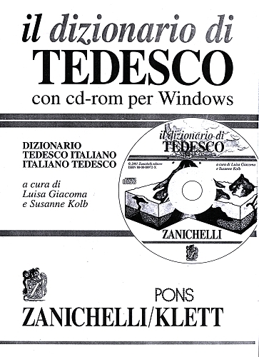 Il dizionario di tedesco : con CD-ROM per Windows : dizionario tedesco italiano, italiano tedesco / a cura di Luisa Giacoma e Susanne Kolb. – Bologna : Zanichelli ; Stuttgart : PONS Klett, 2001. – 1 volume, 1 CD-ROM ; in contenitore, 27 cm. – Titolo del contenitore. – ISBN 88-08-08972-X
