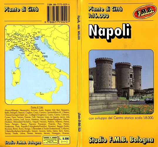 Napoli : pianta della città scala 1:16.000Napoli : pianta della città scala 1:16.000, centro storico scala 1:8.000. - Rastignano, [Pianoro] : Studio F.M.B. Bologna , [1998?]. - 1 carta : color. ; 68x99 cm ripiegata in 21x11 cm. - (Euro city). - Sul verso: Elenco strade e informazioni turistiche. - ISBN: 88-7775-029-4[1] t.u. Napoli <carte topografiche>