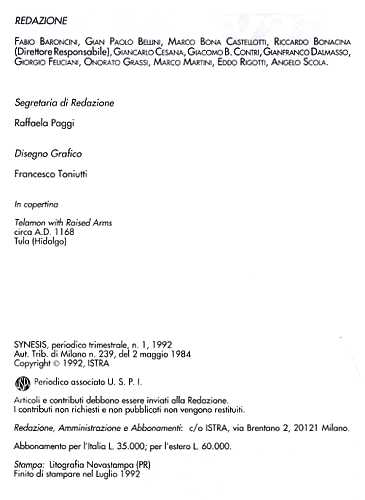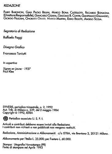 FrontespizioFrontespizio (N. 4, 1989)Verso (N. 4, 1989)Frontespizio (N. 1, 1990)Verso (N. 1, 1990)Frontespizio (N. 1, 1992)Verso (N. 1, 1992)Frontespizio (N. 2, 1992)Verso (N. 2, 1992)